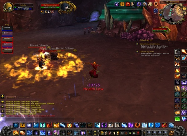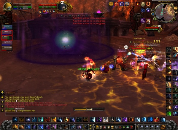 在通往最后头目的房间之前,同样会有石岩之心蛮兵来捣乱,且一路上还有为数不少的虔诚信徒。石岩之心蛮兵前面有介绍过,虔诚信徒则每只血量都只有一万出头,只要坦克抓起来曝光,或是猎人陷阱,法师冰脚自己处理掉即可,接着只要顺着路走,即可到达最后头目的房间。在最后头目前面,会看到三大群虔诚信徒,逐一曝光解决之后即可和最后头目进行战斗。