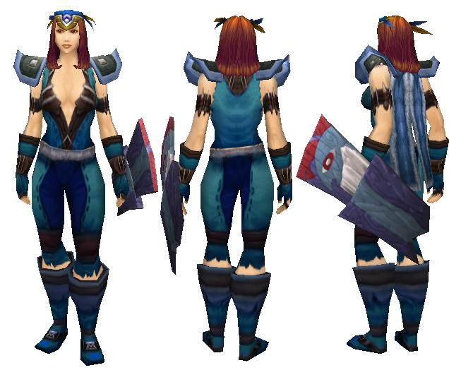 “狡诈(Trickster's)”套,30多级皮甲。为了搭配头饰,模特换了个发型。